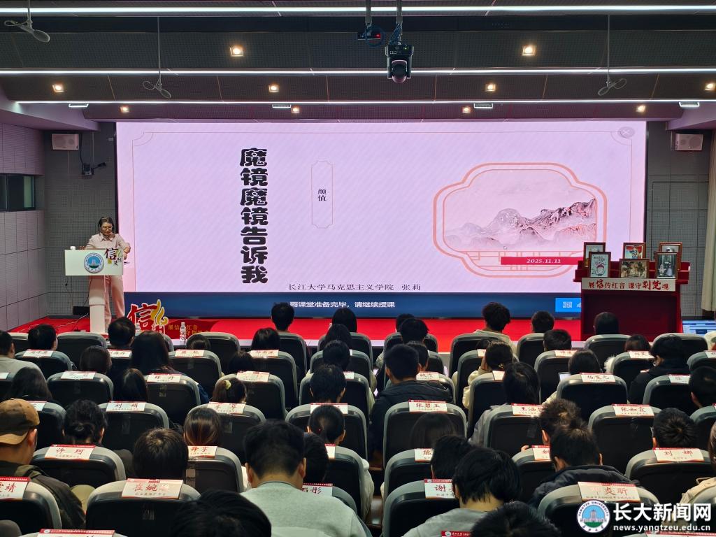 11月11日晚,《信·荆楚》第三季第五讲“魔镜魔镜告诉我”开讲。马克思主义学院副院长张莉与学生代表沈恩泽、周珂名、张欣蕊等联袂讲授,带领师生从向警予的报告《妇女为什么好装饰》中探讨颜值与文明的关系,重新审视何为真正的美。
