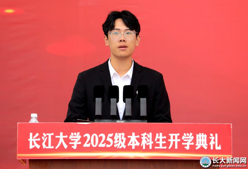“遇见长大是心之所向,也是恰好的缘分;融入长大是每一份细微的温暖,让这里成了‘家’;逐梦长大是带着梦想与责任,走好脚下的每一步。”电子信息与电气工程学院杨志毅同学作为新生代表发言,话语间满是憧憬与期待。他坚定表示,将夯实专业基础,勇敢尝试创新,始终牢记初心,用踏实的脚步谱写激昂的青春乐章。