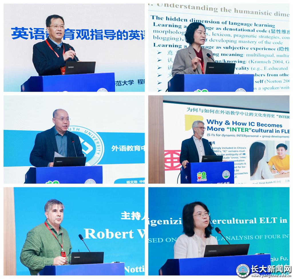 论坛期间,10位国内外专家作了主旨发言。北京师范大学程晓堂教授探讨了“英语教育观指导下的英语教学新形态”;上海外国语大学张红玲教授强调了跨文化能力培养在英语教育教学中的意义;中南大学杨文地教授分享了外语教育中中国传统文化的融入与国际传播;上海外国语大学Steve Kulich教授阐释了跨文化交际内涵深化的必要性与路径。宁波诺丁汉大学Robert Weekly博士批判了英语教学领域的“母语者优越论”;美国亚利桑那州立大学Paul Matsuda教授反思了AI时代外语教育的价值与困境;日本名城大学铃村裕辅教授探索了东西方文明碰撞下的语言刺激与文化意义;长江大学付小秋副教授分析了跨文化外语教育框架及其本地化适应问题;华中师范大学闫春梅教授揭示了中国地方综合性大学中年英语教师教育者面临的专业困境。