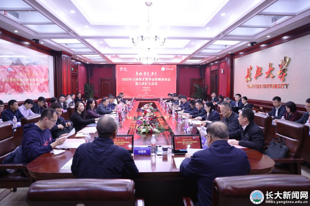 11月16日晚,王涛英才奖学金管理委员会在长江大学武汉校区知音厅会议室召开了第八次扩大会议,刘勇胜致欢迎辞,会议听取了山东省中国石油大学教育发展基金会、北京中国石油大学教育基金会王涛英才奖学金工作情况的汇报,审定第十七届获奖学生名单,座谈交流奖学金相关工作,并商定2026年承办高校为中国石油大学(北京)。中国石油教育学会理事长杨华在讲话中指出,要坚持立德树人根本任务,跟踪培养创新型杰出人才,扩大王涛英才奖学金在行业和社会的影响,把王涛英才奖学金打造成石油高校奖学金的品牌项目。