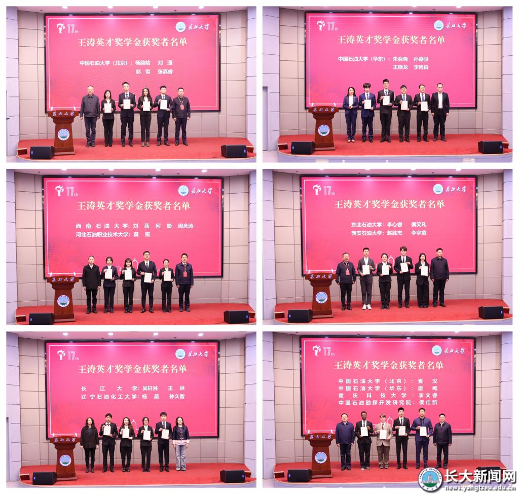 新闻网讯(记者 晏亮/文刘健/摄)国歌嘹亮,誓言铿锵。11月17日上午,长江大学武汉校区报告厅内洋溢着庄严而热烈的氛围,第十七届王涛英才奖学金颁奖典礼暨“梦之队”优秀代表报告会在这里举行。来自9所石油高校和中国石油勘探开发研究院的25名优秀学子,荣膺这一石油教育领域的崇高荣誉。