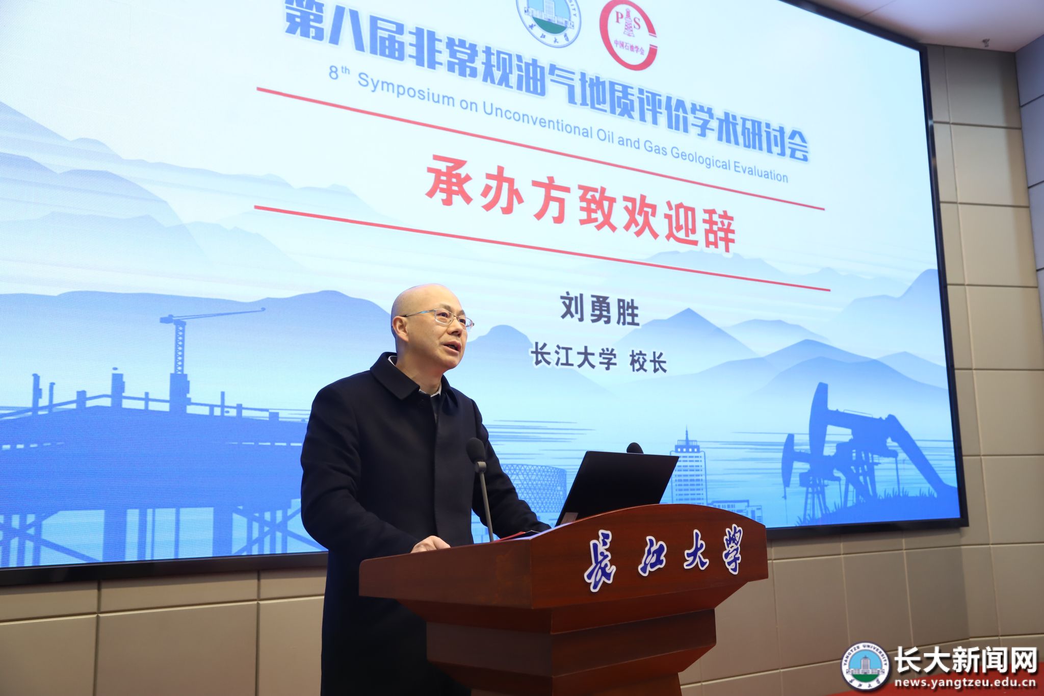 校长刘勇胜致开幕辞。他表示,非常规油气的高效勘探与绿色开发,是提升国家能源自主保障能力、实现经济社会高质量发展的关键。作为扎根重要能源基地的高校,长江大学在非常规油气地质理论、勘探技术等领域构建了完整的人才培养与科研体系。以大数据、人工智能为代表的新质生产力正为地质科学研究开启“智慧之门”,本次研讨会既是成果检阅,更是思想碰撞与方向凝望,期待其能成为驱动创新的技术峰会与启迪未来的思想摇篮。