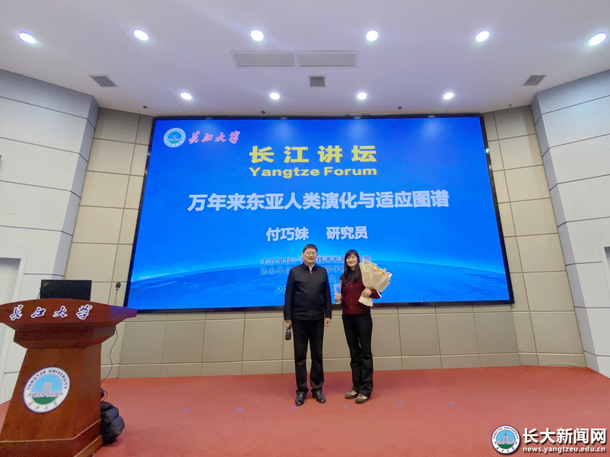 报告结束后,朱光有向付巧妹赠送了“长江讲坛”杯,学生代表向付巧妹献送了鲜花。