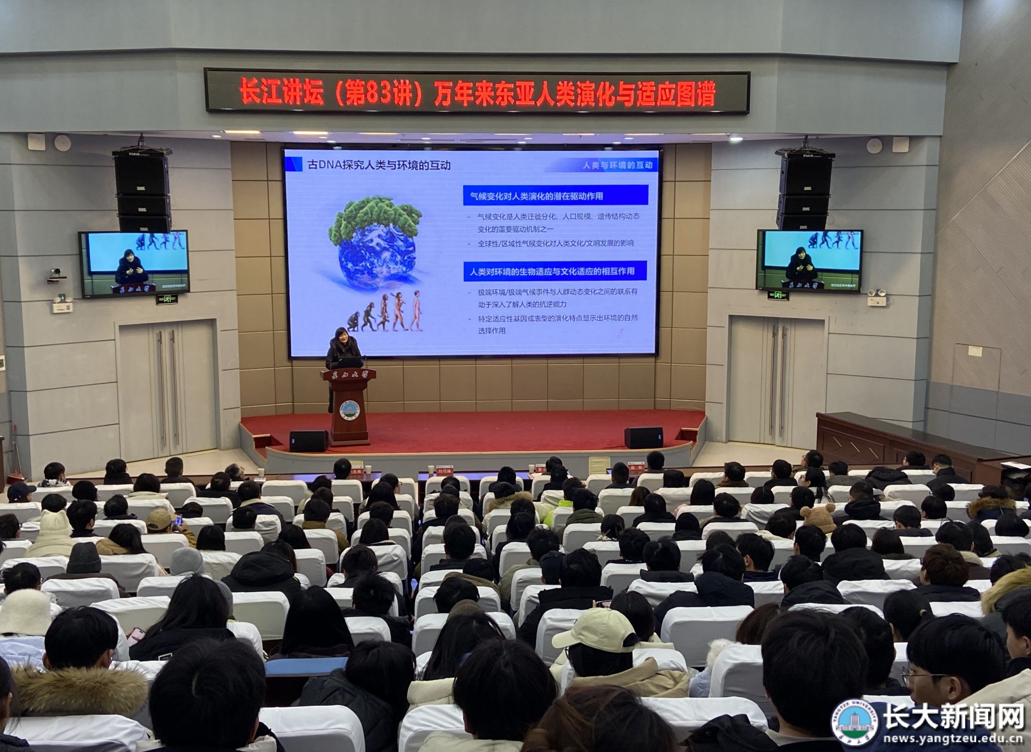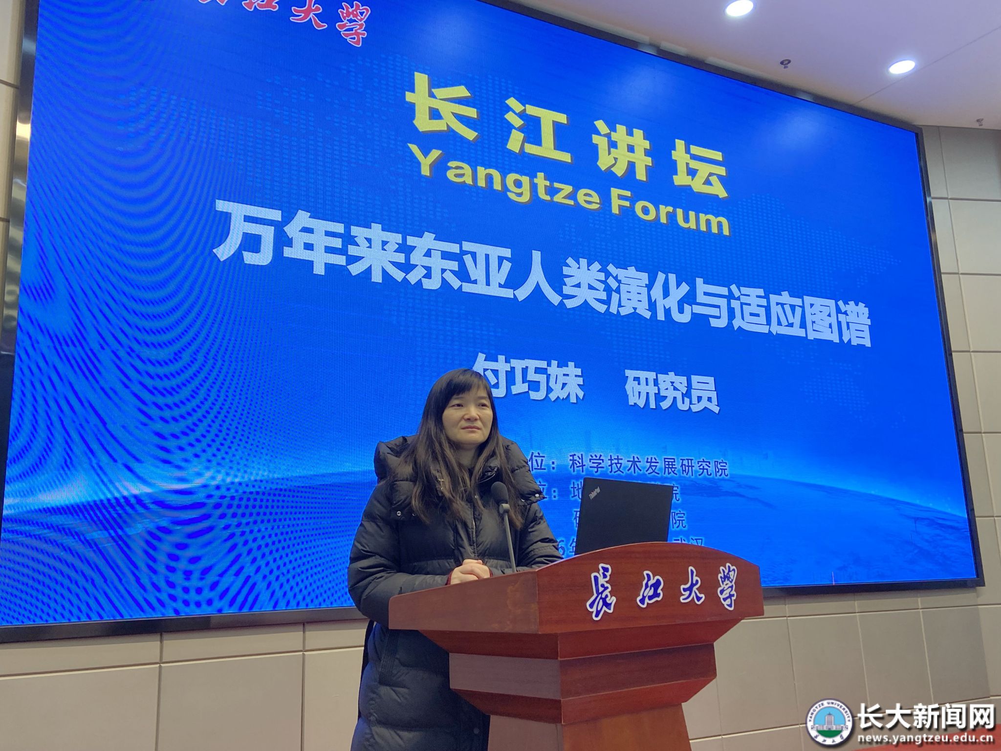 新闻网讯(通讯员 胡景怡)1月21日上午,长江讲坛第83讲在武汉校区学术报告厅举行。国际古遗传学领域领军科学家、中国科学院古脊椎动物与古人类研究所副所长付巧妹研究员应邀为我校师生作题为“万年来东亚人类演化与适应图谱”的学术报告。能源学部300余名师生聆听了报告,能源学部主任、地球科学学院院长朱光有教授主持报告会。