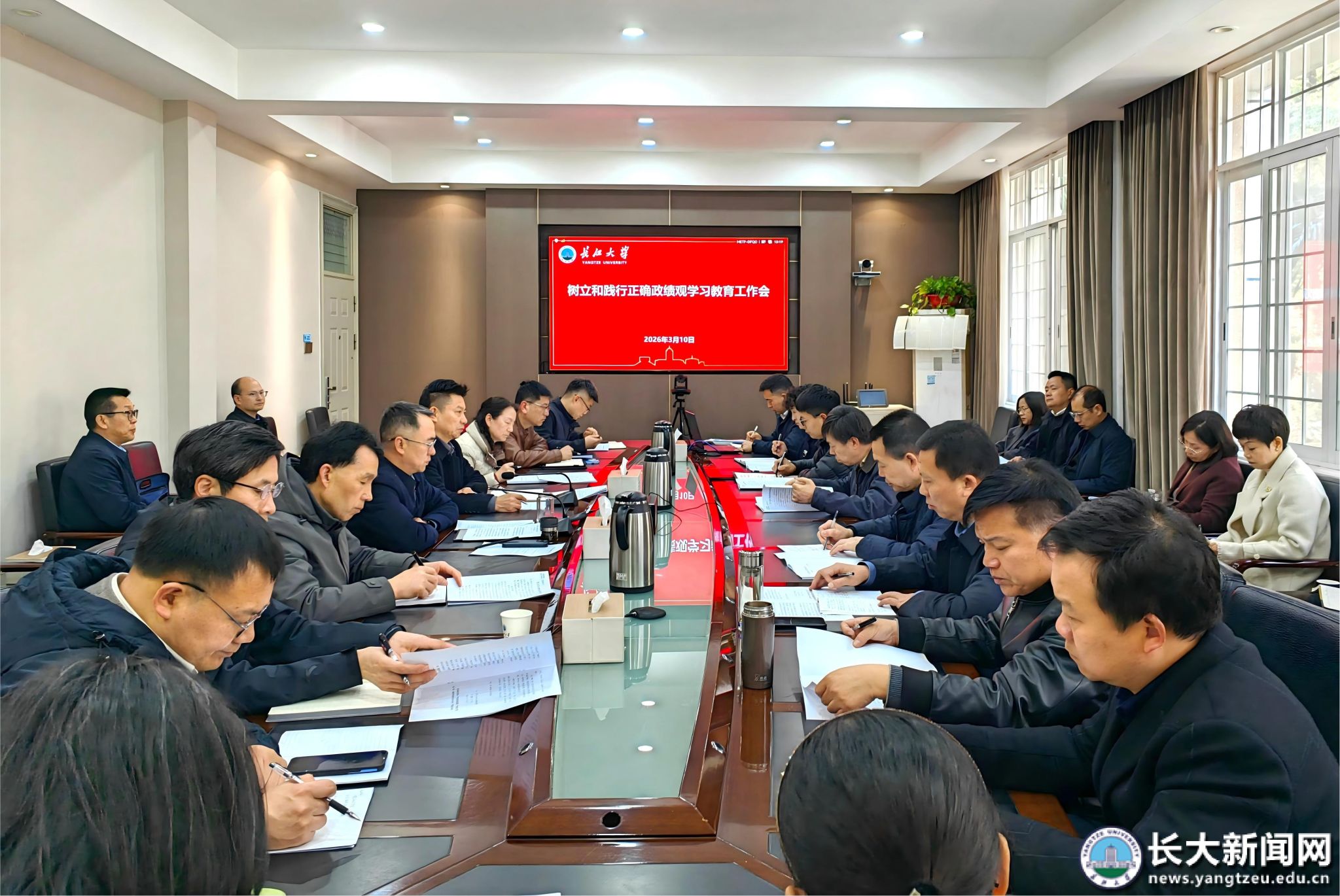 新闻网讯(通讯员 向如)3月10日,学校树立和践行正确政绩观学习教育工作会在6教205会议室召开。党委书记王建平出席会议并讲话。党委常委、党委组织部部长、党委统战部部长李应军主持会议。