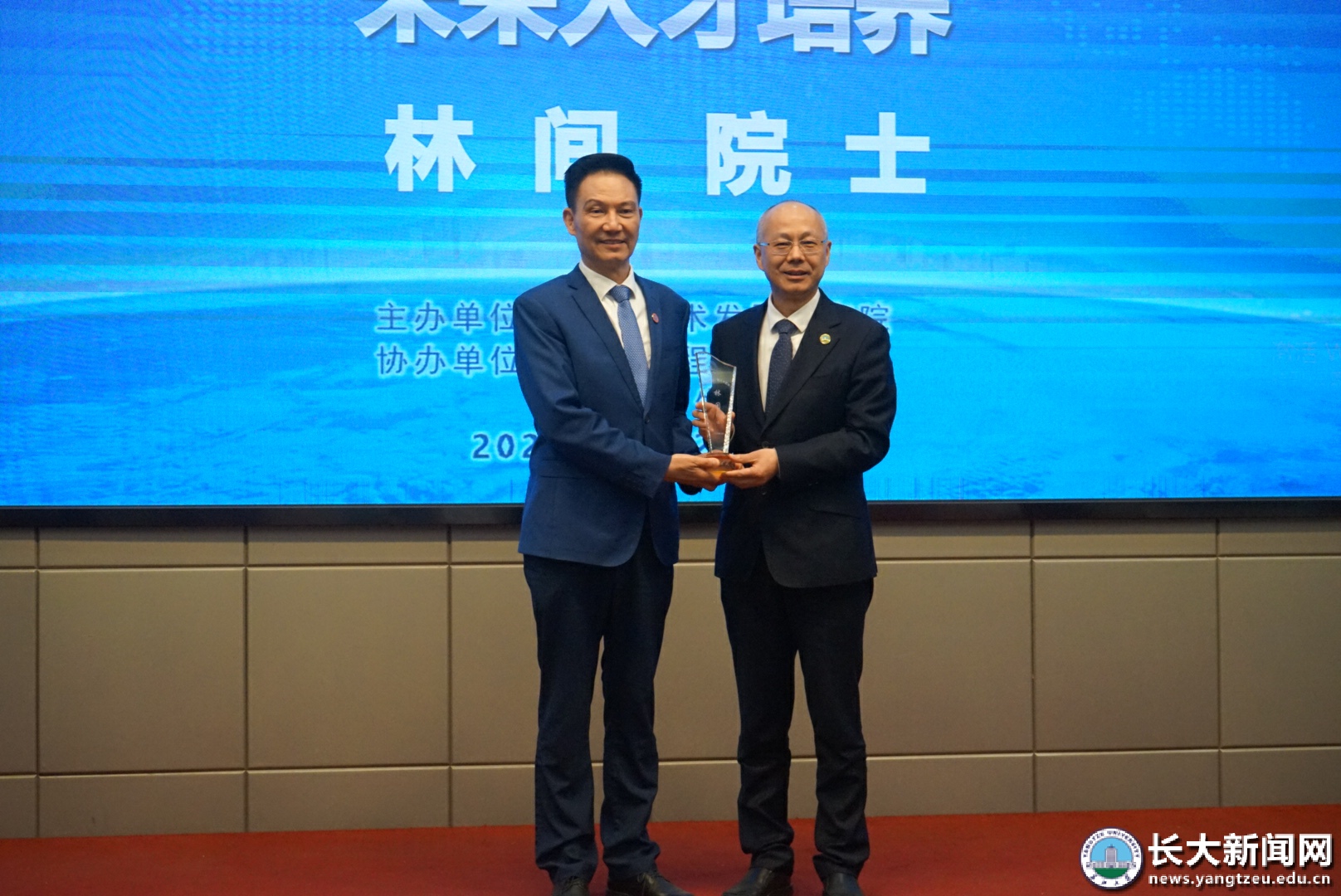 讲座结束后,刘勇胜代表学校向林间院士赠送了“长江讲坛”杯,学生代表献上了鲜花。