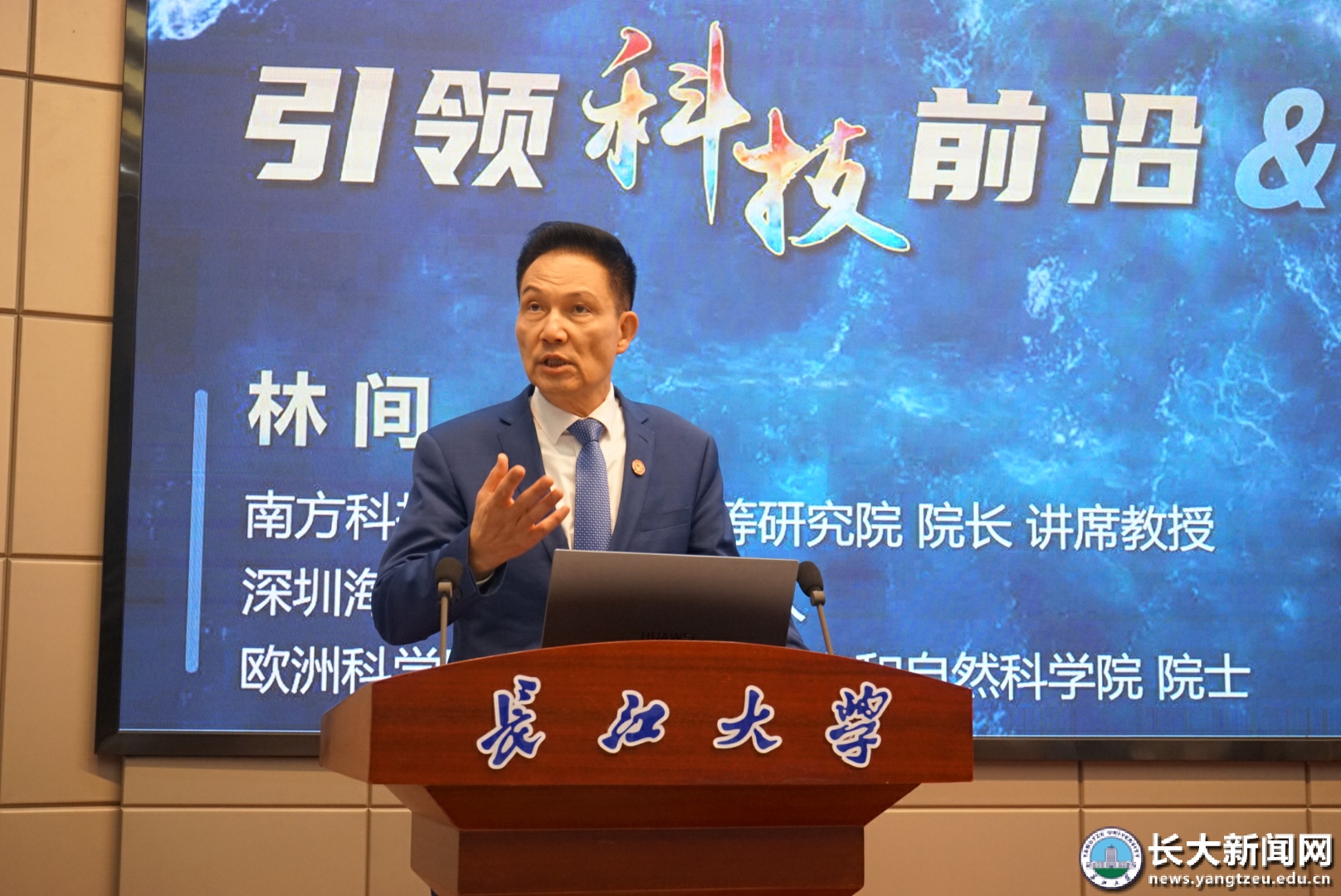 围绕海洋高端人才培养,林间院士详细介绍了深圳海洋大学的建设规划。他现场向长江大学发出诚挚邀请,希望双方开展深度校际合作,共建人才培养与科研交流平台,并勉励广大师生立足学科前沿,主动关注海洋科学、地球物理、资源环境与工程技术交叉融合发展趋势,在服务国家重大战略需求中找准学术方向、提升创新能力。