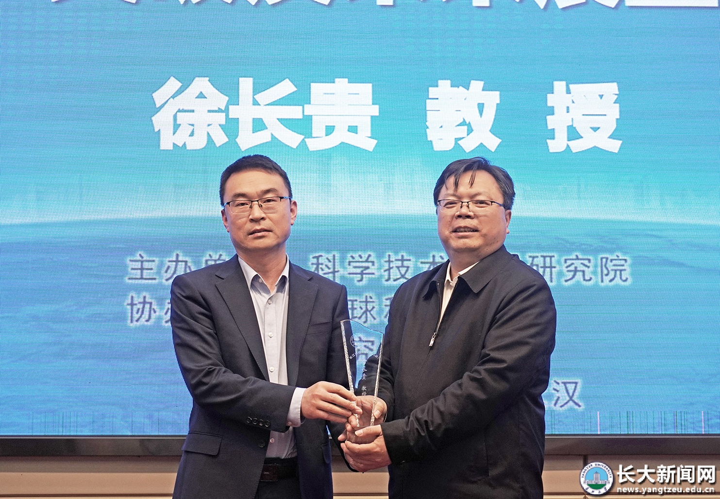 讲座结束后,吕一兵向徐长贵赠予了“长江讲坛”杯。学生代表向徐长贵教授献上了鲜花。