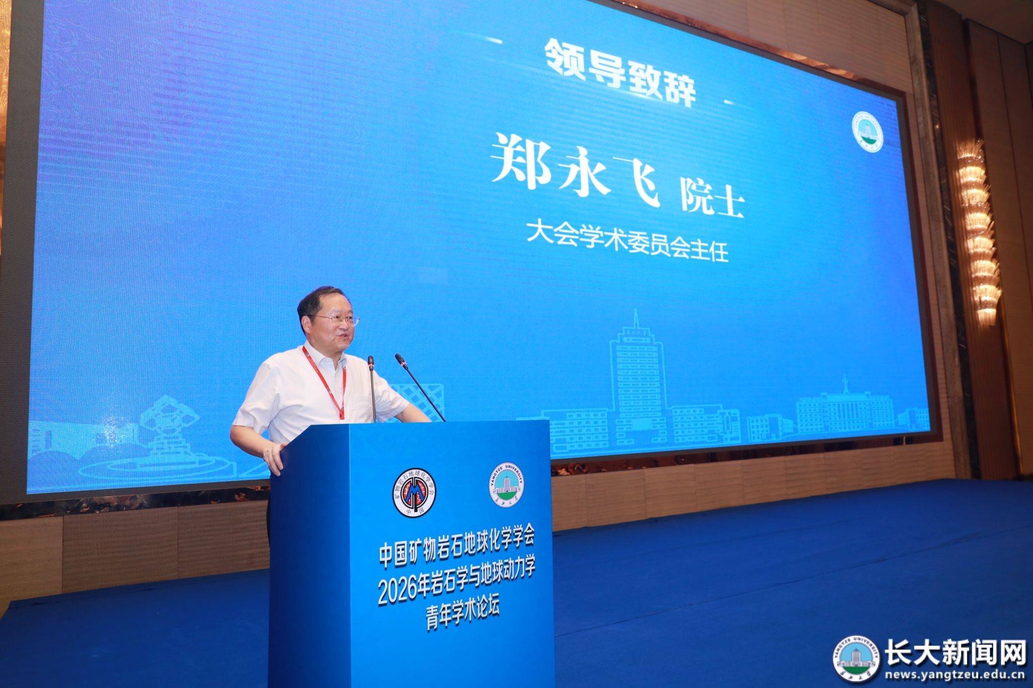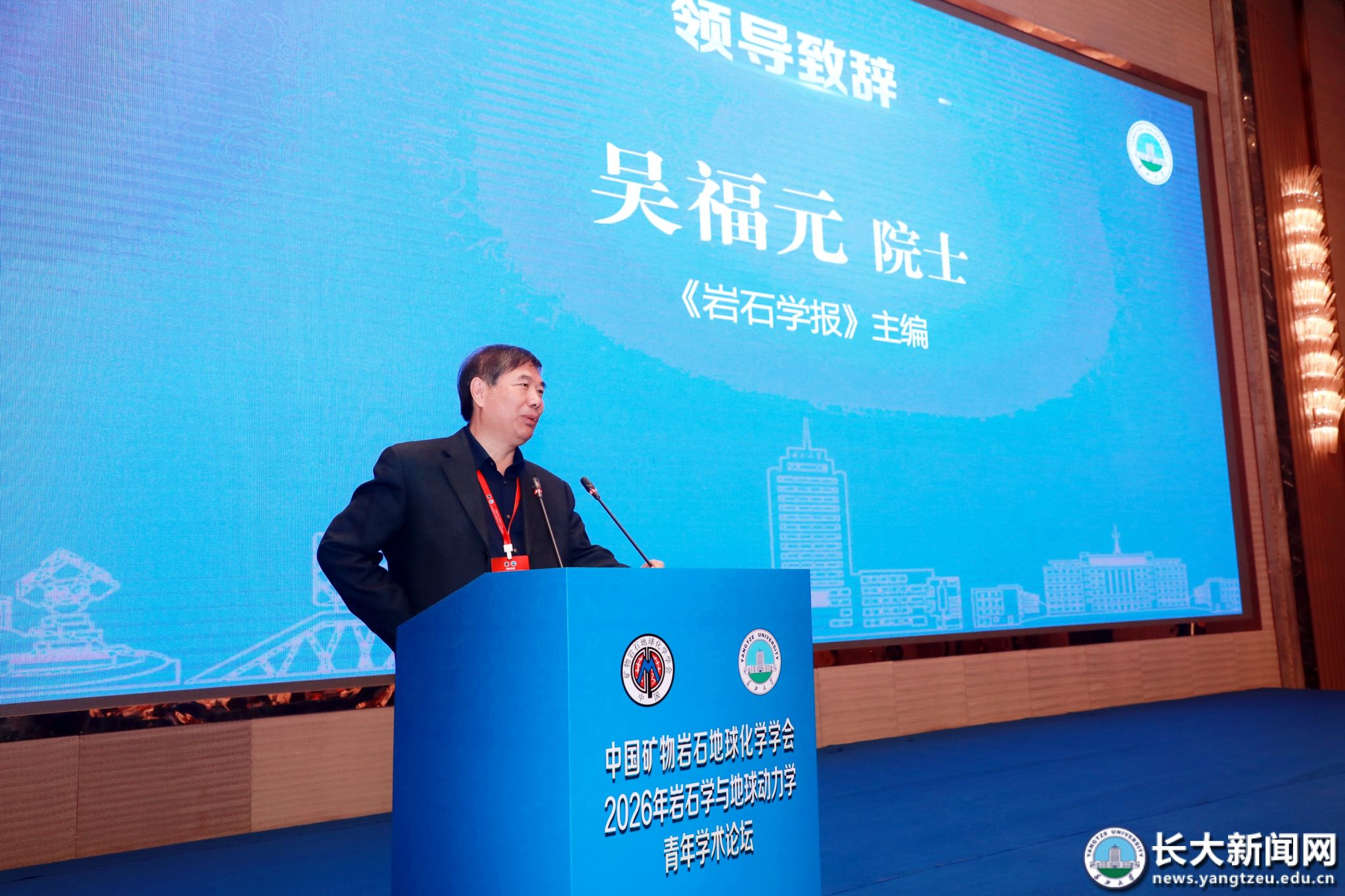 中国科学院院士、大会学术委员会主任郑永飞,《岩石学报》主编、中国科学院院士吴福元先后致辞,对论坛的举办表示祝贺,高度肯定我校在地学领域的突出贡献,勉励青年学者勇攀科学高峰,并继续支持《岩石学报》发展,推动我国岩石学与地球动力学研究走向世界前沿。