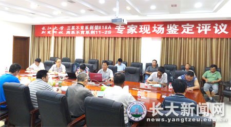 新闻网讯8月5日,湖北省农作物品种审定委员会组织水稻专家,对长江大学“主要粮食作物产业化湖北省协同创新中心”选育的2个水稻不育系“荆楚818A”(长江大学为第一选育单位)、“荆11-2S”(长江大学为第二选育单位)进行了现场鉴定、评议。