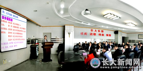 新闻网讯4月20日下午,长江经济带发展研究院建设动员会在主教1401会议室召开,来自校内外的专家学者和荆州市有关领导等近40人参加会议,会议由科技处处长许晓宏主持。