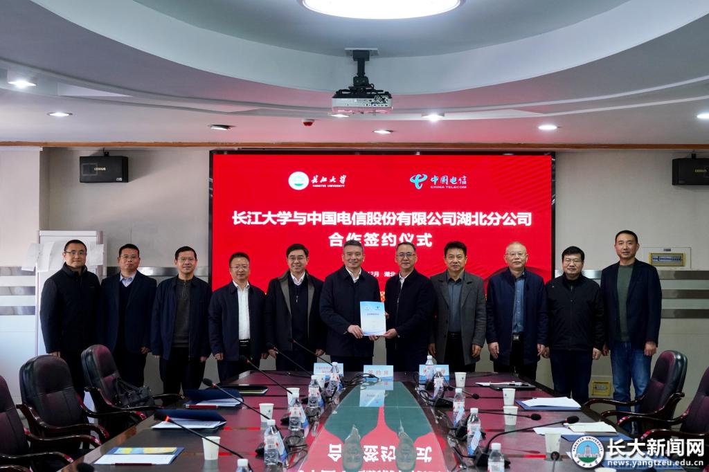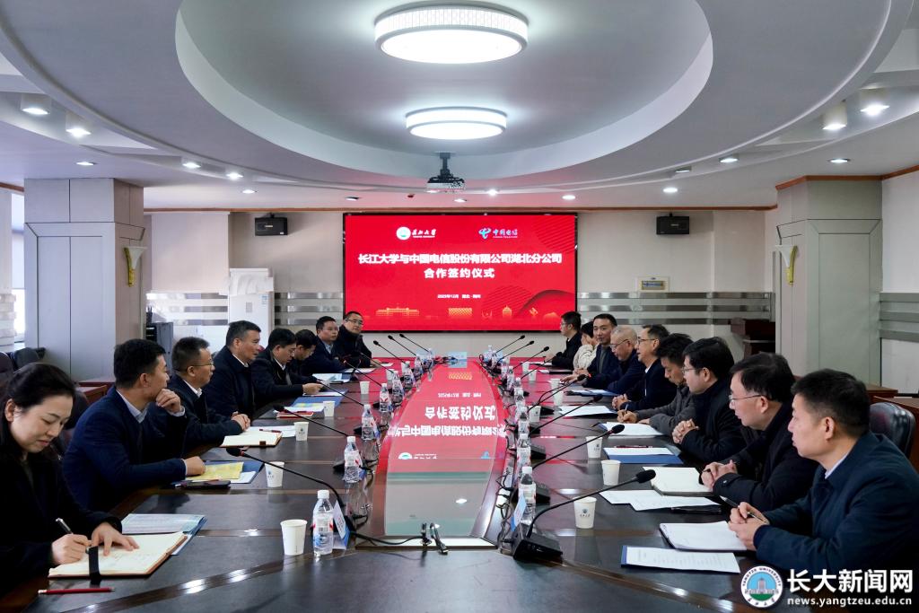 新闻网讯 12月3日,长江大学与中国电信股份有限公司湖北分公司(以下简称“湖北电信”)合作框架协议签约仪式在东校区举行。根据协议,双方将在信息化基础设施建设、智慧校园应用、产学研协同及人才培养等领域开展深度合作,共同推进教育数字化转型与产业创新发展。湖北电信党委书记、总经理陈志强,校党委书记王建平出席仪式并致辞。