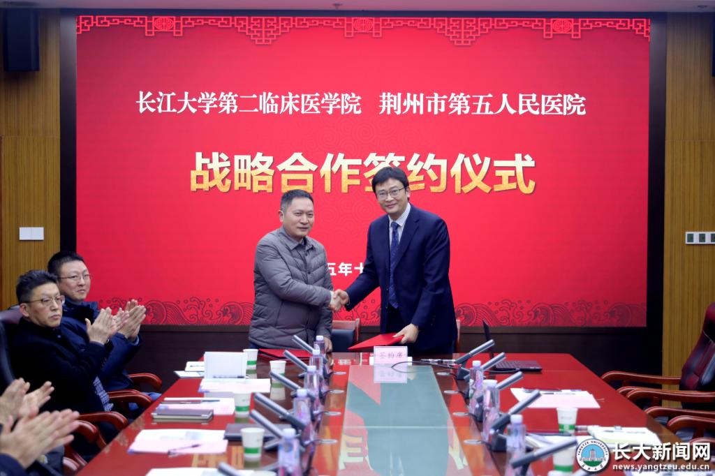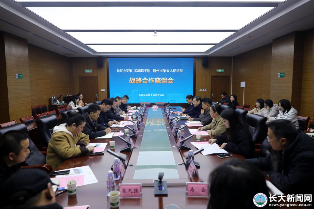 新闻网讯 12月12日下午,长江大学支持荆州区卫健系统高质量发展座谈会在荆州市中心医院荆北院区举行。会上,长江大学第二临床医学院与荆州市第五人民医院签订战略合作协议,双方将围绕医疗人才培养、资源共建共享展开深度合作,共同助推区域卫生健康事业高质量发展。