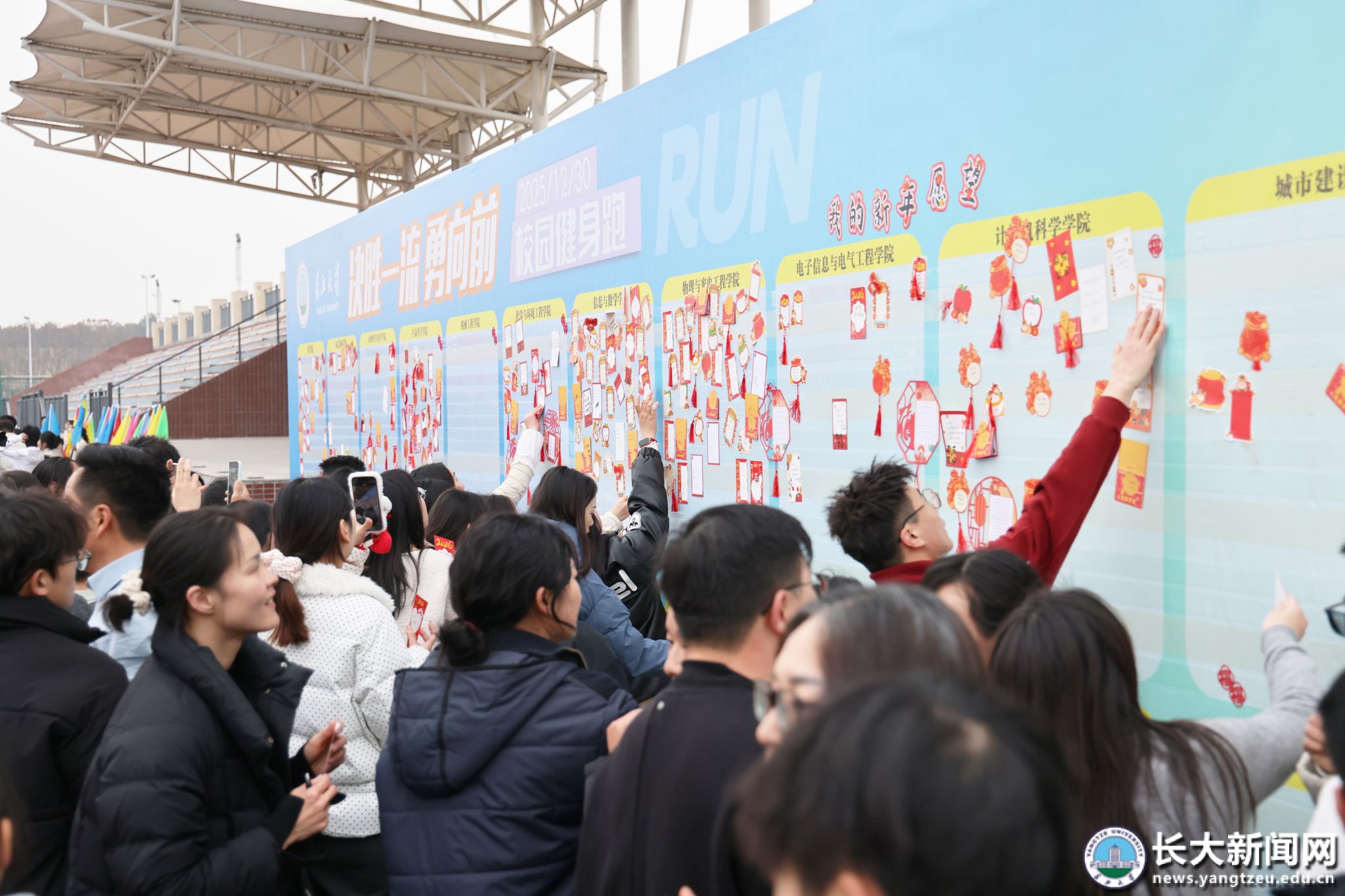 当越过终点的“凯旋门”,大家挥动双臂,欢乐之情溢于言表。“祝愿我们的祖国繁荣昌盛。”“祝长江教师上下一致共奋进,越步进入‘双一流’。”“祝家人身体健康,开心快乐”……终点处还设置有祝福墙,教职工们纷纷写下对祖国、对学校和对自己以及家人的美好祝愿。