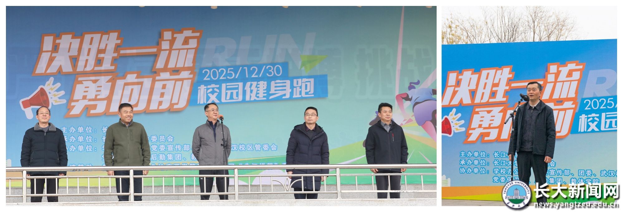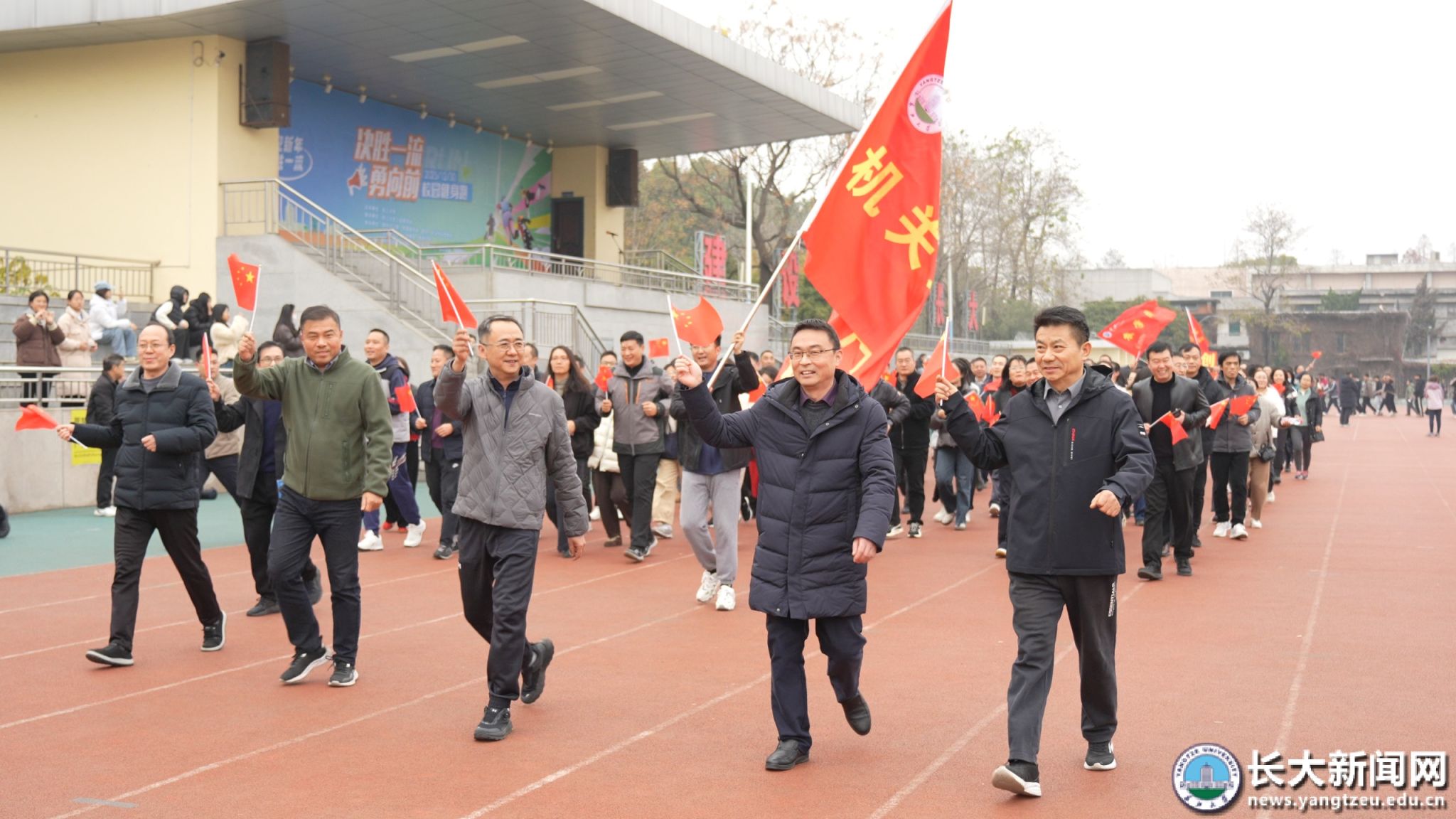 党委书记王建平致辞并宣布健身跑开跑。他说,“十四五”期间,学校建设发展取得突破性进展。人才培养成绩斐然、科学研究多点突破、社会服务成效尽显、办学条件不断改善、学校声誉持续提升,师生员工的获得感、幸福感不断增强。展望十五五,相信在长大师生的共同努力下,我们一定能实现‘双一流’目标,取得特色高水平大学建设的决定性进展。他宣布“长江大学2026年校园健身跑开跑!”党委副书记敖廷华在武汉校区同步宣布开跑。