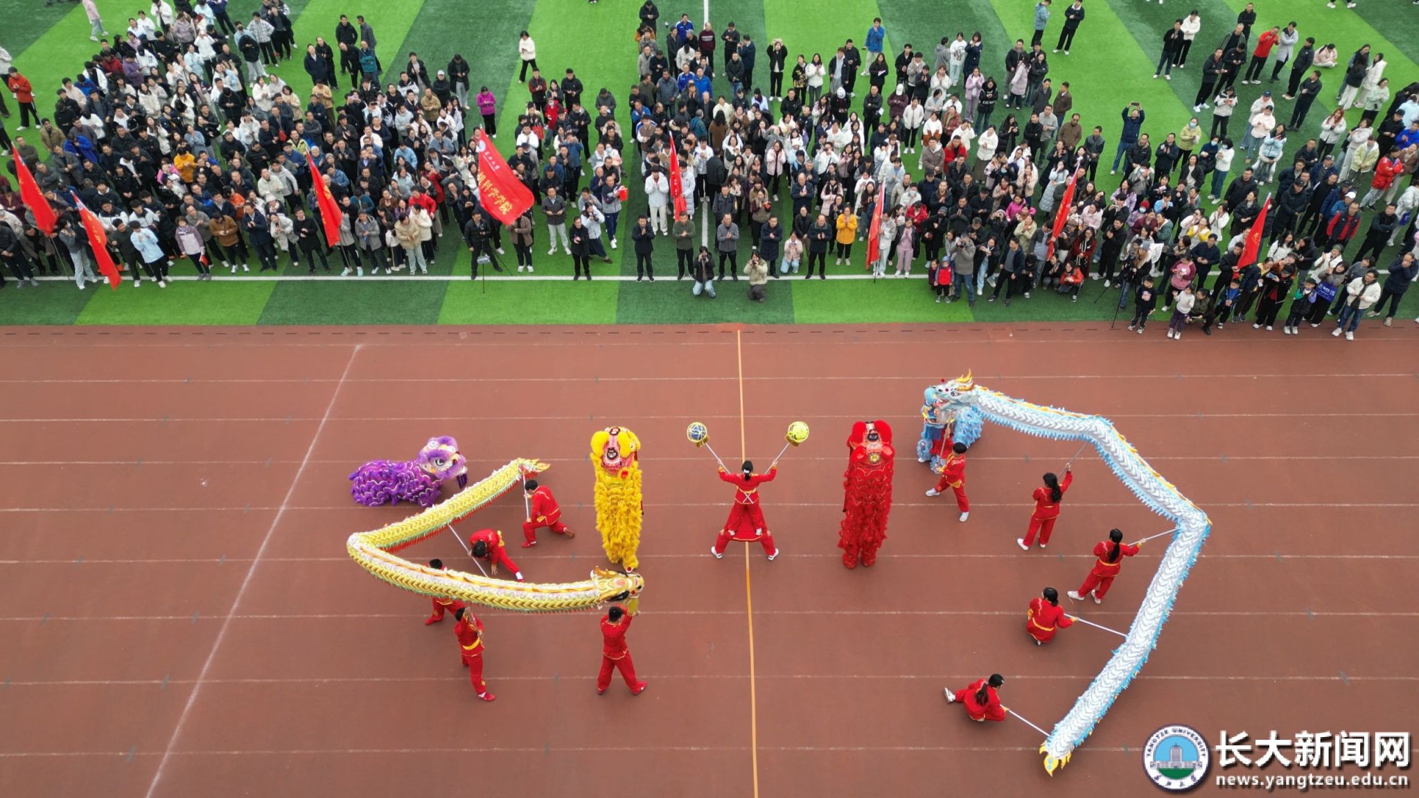 活动在热闹的“龙腾舞狮迎新年”表演中拉开序幕。伴随着铿锵的锣鼓声,彩狮欢腾跳跃,飞龙穿梭腾挪,师生挥舞国旗共同欢呼,现场气氛热烈,活力四射。音乐响起,千余名师生齐唱校歌,表达了对学校的美好祝愿。