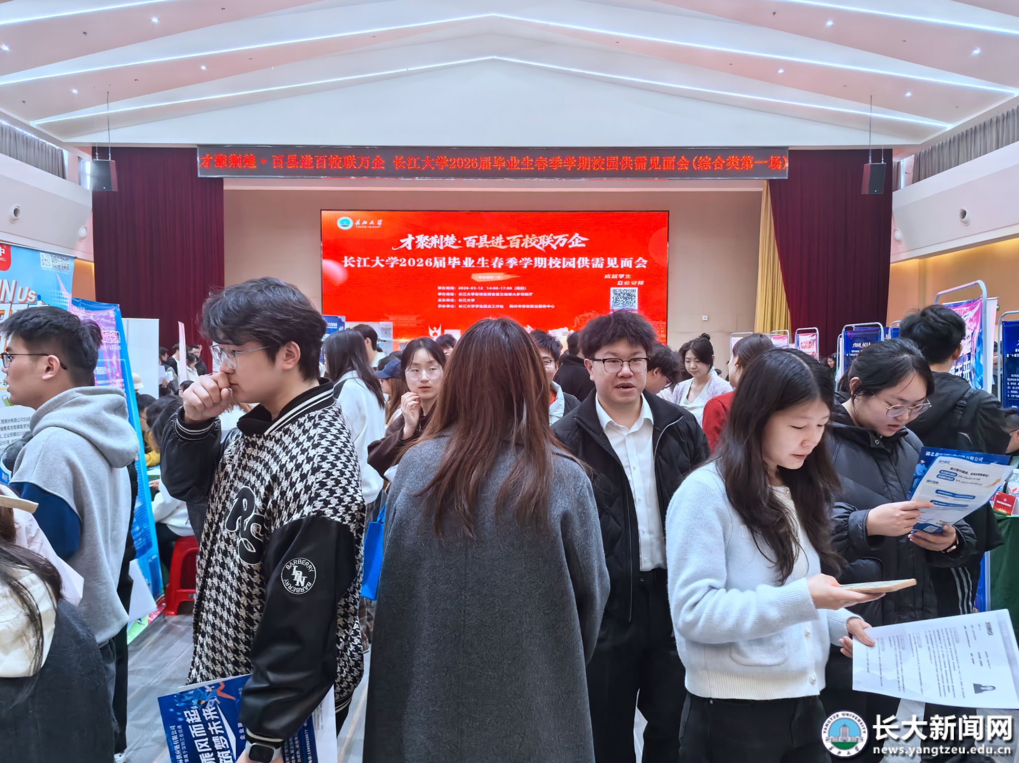 新闻网讯(通讯员 周双)春暖荆楚聚贤才,校企携手促就业。3月12日下午,东校区薪火多功能厅内人头攒动、气氛热烈,我校2026届毕业生春季校园供需见面会(综合类第一场)在此拉开帷幕。本次招聘会汇聚省内外130家企事业单位,提供优质岗位6529个。党委常委、党委组织部部长、党委统战部部长李应军到场指导招聘工作,并与各用人单位代表和毕业生深入交流,鼓励毕业生寻求合适就业岗位。