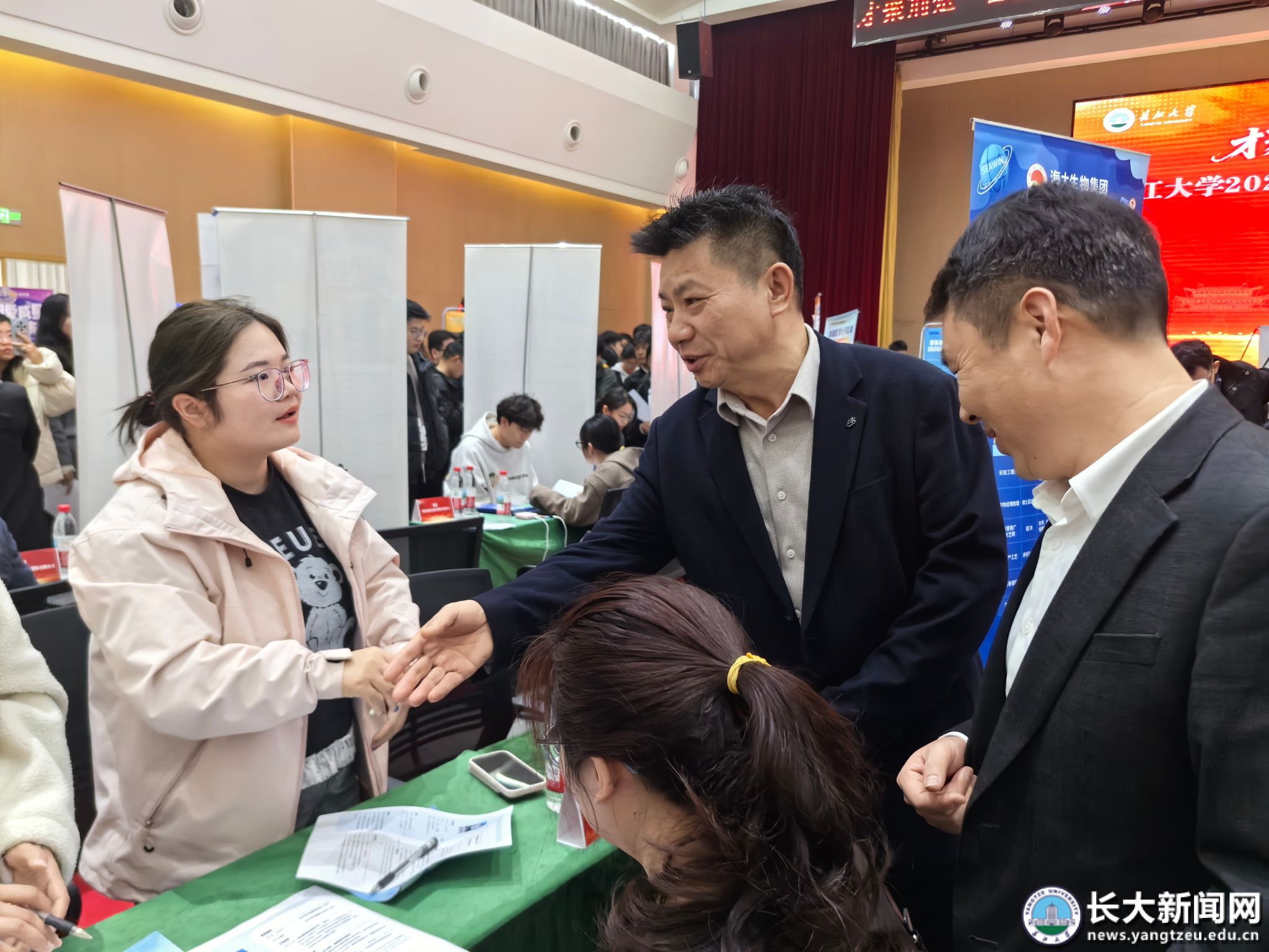 招聘会期间,李应军来到现场,逐一走访用人单位展位,详细了解企业人才需求和对学校人才培养的建议,并与求职毕业生亲切交流,鼓励他们把握机遇,追求理想职业,积极投身国家建设。