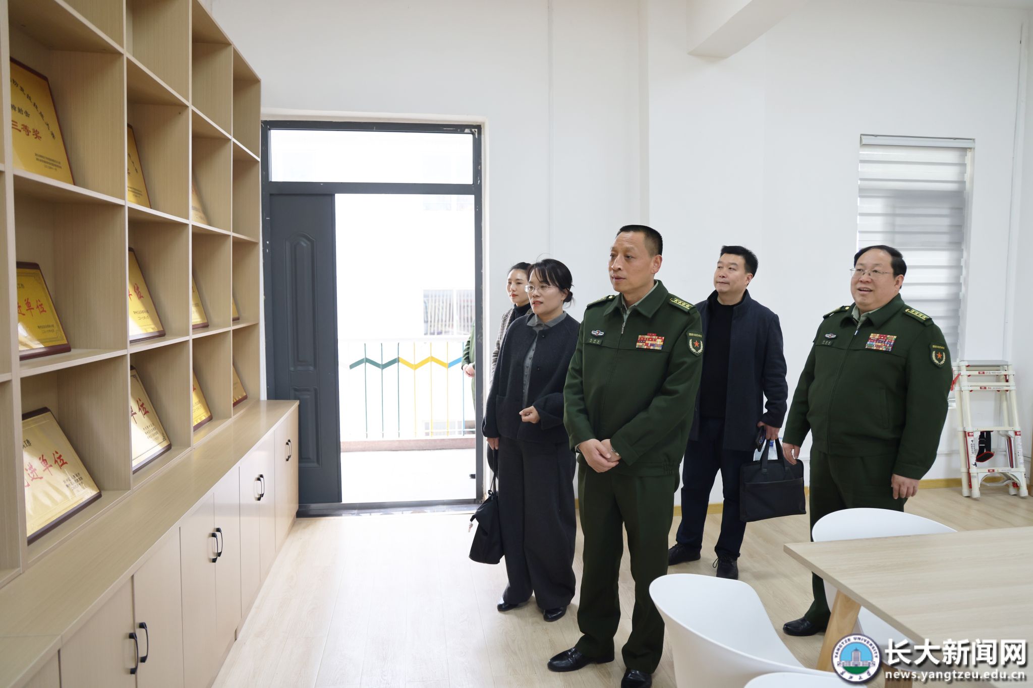 新闻网讯(通讯员 杜雁冰 记者 刘健/摄)3月12日下午,湖北省军区动员局局长毛洪山一行莅临我校,检查指导学校征兵工作。党委书记王建平参加活动。