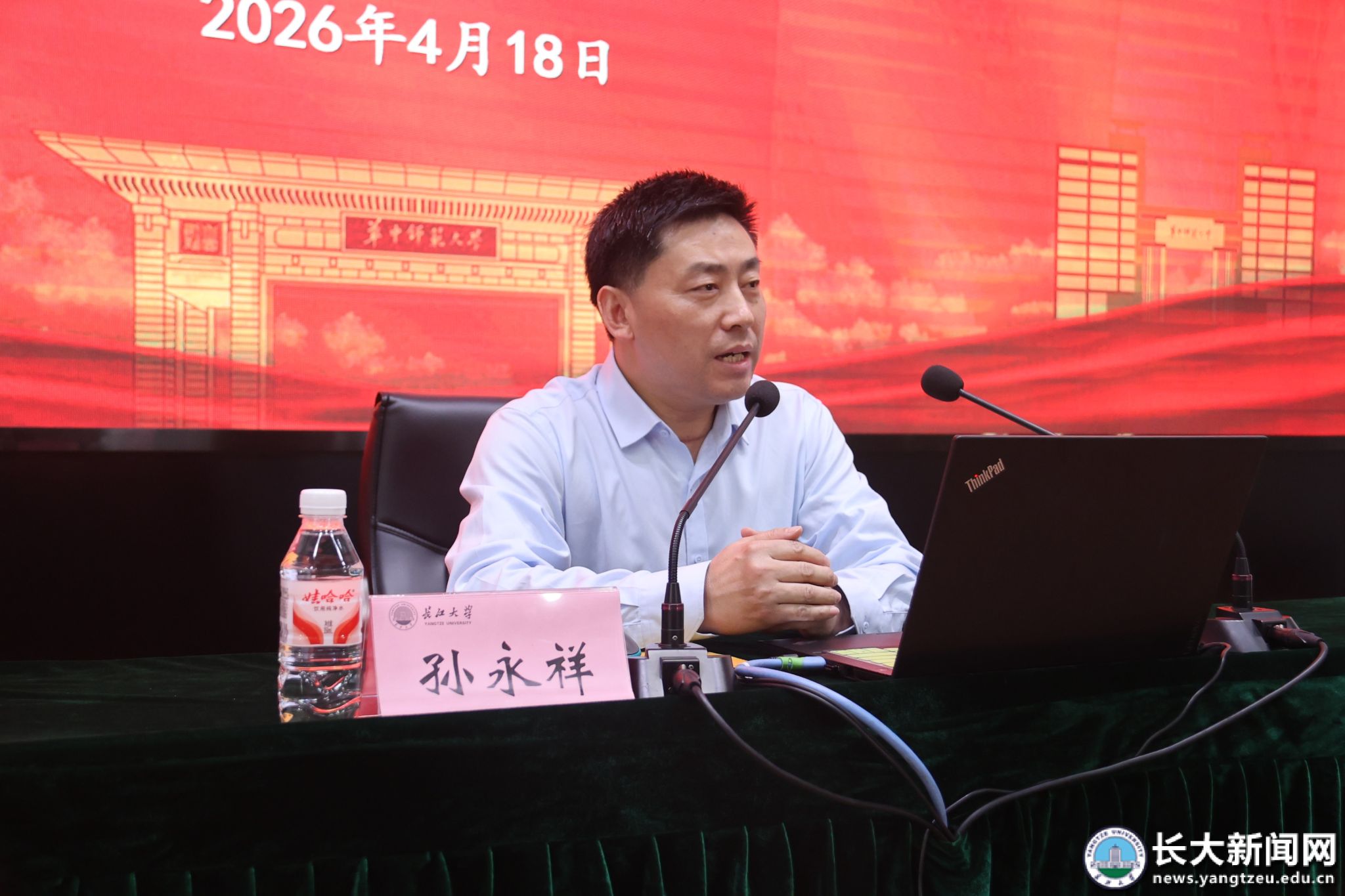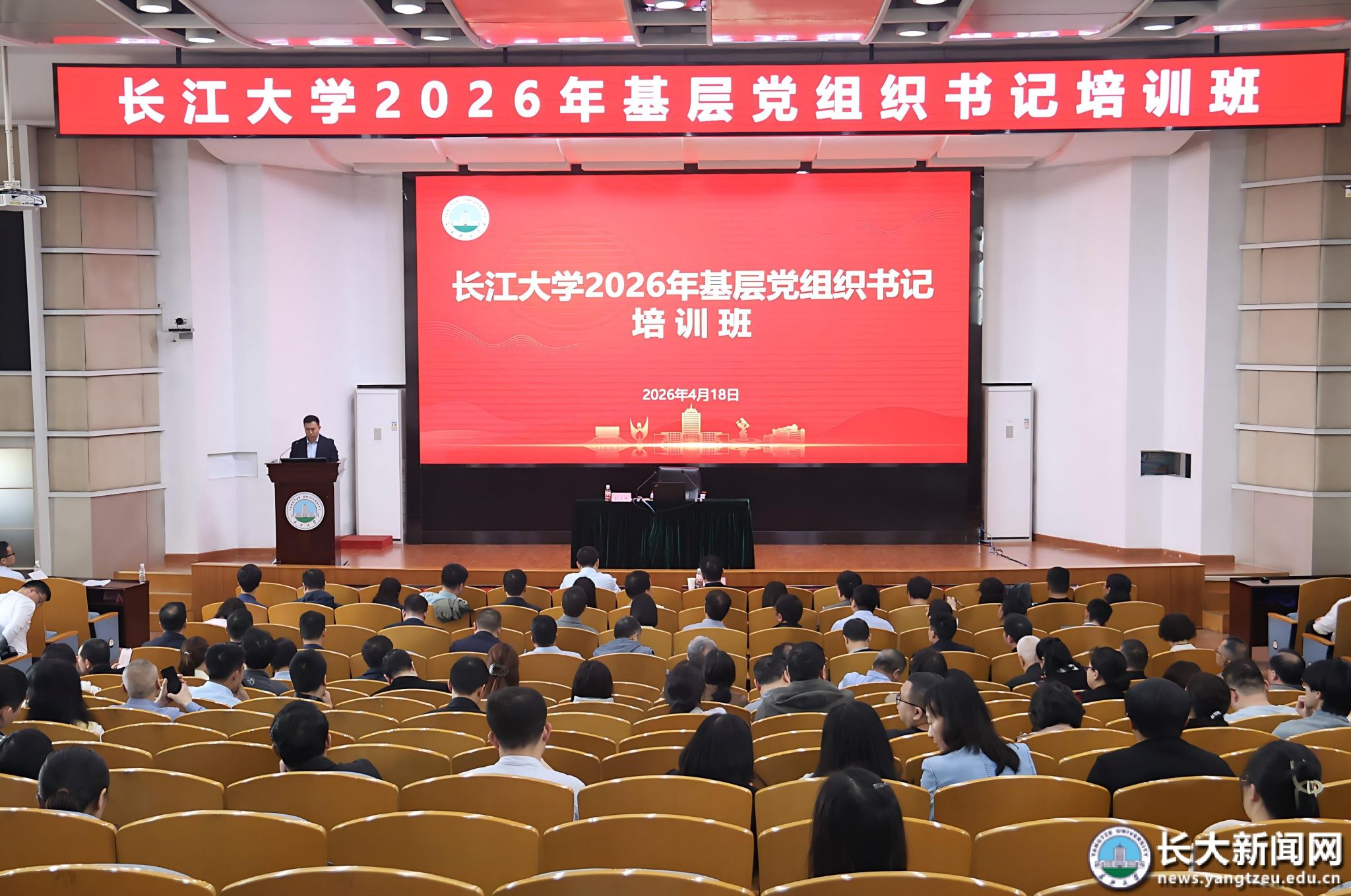 新闻网讯(通讯员 向如 实习记者 冷昭雨/摄)4月18日,学校2026年基层党组织书记培训在求实报告厅举行。党委常委、党委组织部部长、党委统战部部长李应军出席培训班。省教育厅组织处副处长杨作成、华中师范大学国内合作与培训管理处处长孙永祥受邀作辅导报告。