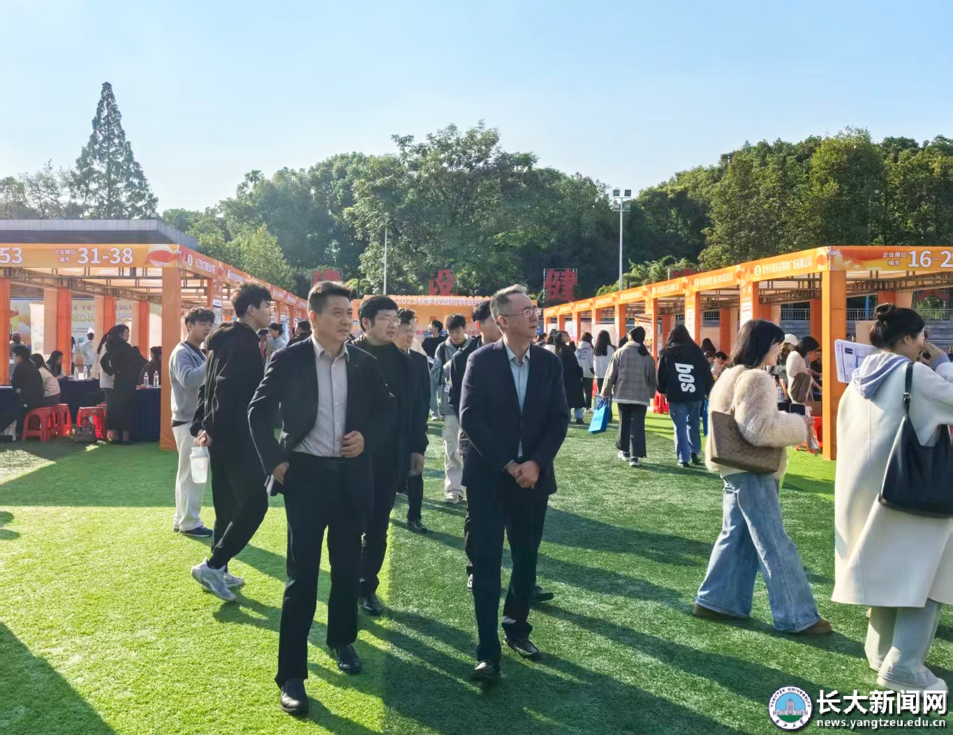 新闻网讯(学生记者 胡月/文 夏爽 尹羽珊 黄培希/摄)10月23日下午,“才聚荆楚·共建支点·百县进百校联万企”2025年湖北省高校毕业生秋招系列活动长江大学专场在东校区田径场举行。党委书记王建平,党委常委、党委组织部部长、党委统战部部长李应军到场指导。