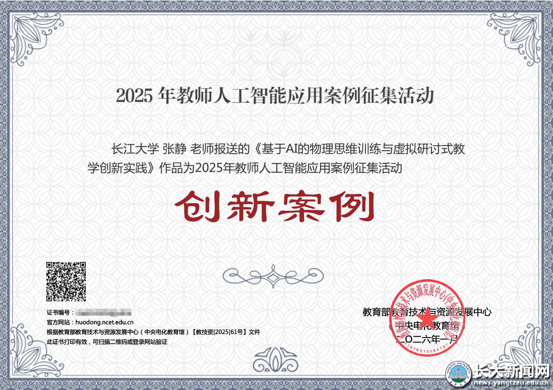 新闻网讯(通讯员 周敏)近日,教育部教育技术与资源发展中心(中央电化教育馆)公布2025年教师人工智能应用案例征集活动结果。我校张静教授主持的“基于AI的物理思维训练与虚拟研讨式教学创新实践”项目入选高等教育“创新案例”。