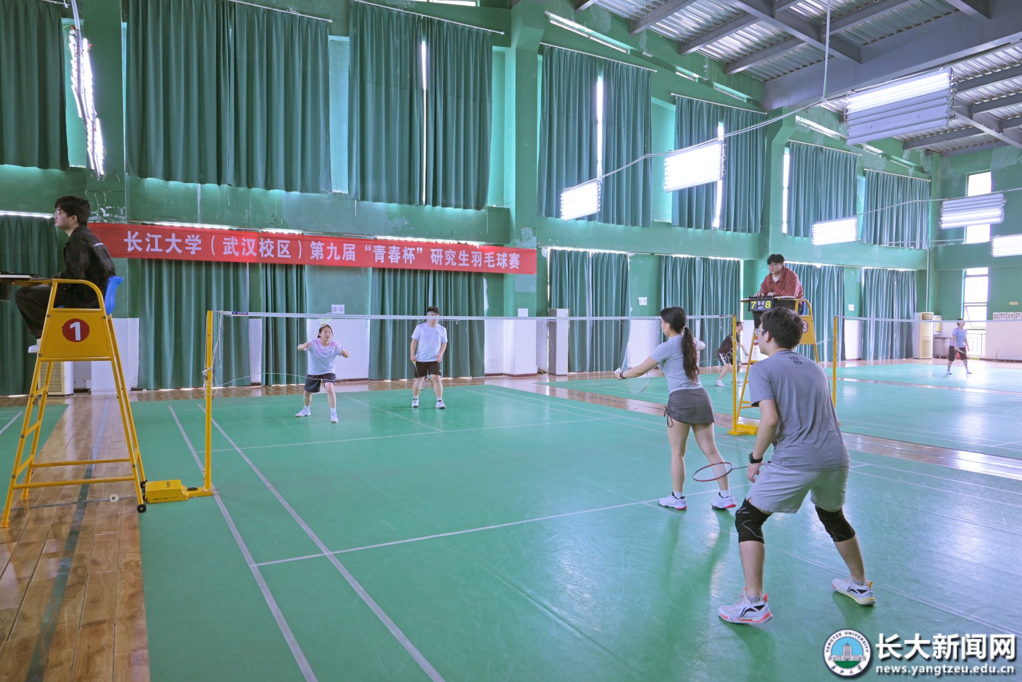 新闻网讯(通讯员 张晓宇 王浩宇、彭梓航)为丰富研究生校园文化生活,促进师生交流互动,4月23日,长江大学武汉校区第九届“青春杯”研究生羽毛球赛在校区体育馆举行。