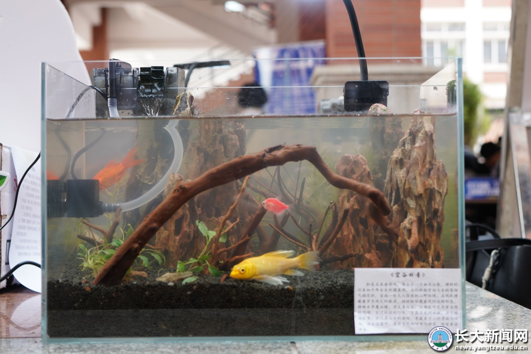 各美育体验区各展其美,尽显多元魅力。“文韵之美”区,书香氤氲,读书分享、英文绘本阅读、书法体验等活动依次展开,师生于字里行间品味文学之美;“传承之美”区,“信·荆楚”团队带来红色书信与文创成果,让信仰之美薪火相传,点茶、剪纸、漆扇、拓染等非遗文化诉说着穿越千年的匠心智慧;“智创之美”区,科技感扑面而来,机械创新设计、VR量子世界、趣味数学、AI文化体验等青年科创成果集中亮相,科技与创意碰撞出耀眼火花;“自然之美”区则生机盎然——建筑模型错落有致,水族造景中绿植、奇石与游鱼相映成趣,昆虫协会珍藏的标本整齐排列,悄然勾勒出一幅和谐灵动的生态画卷。